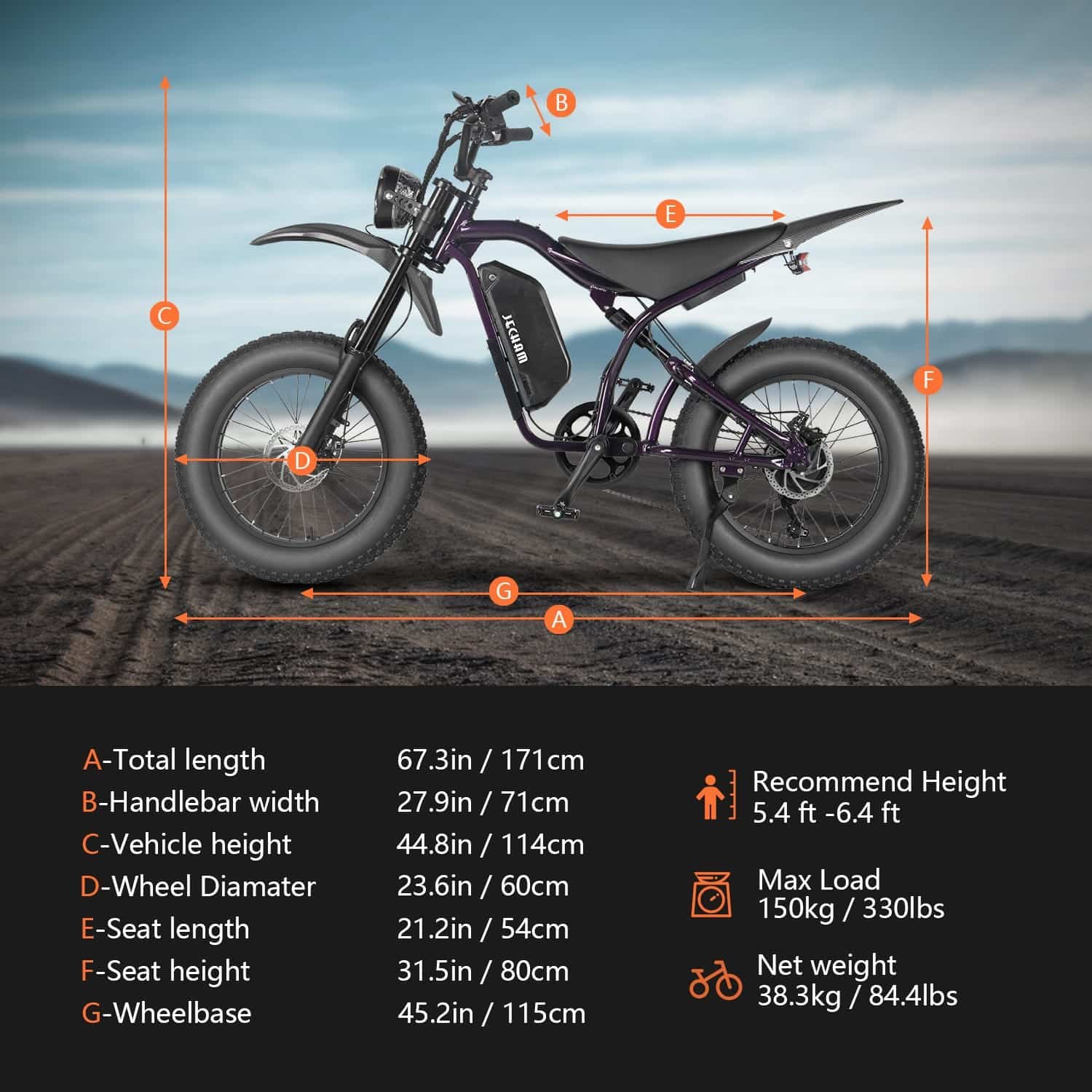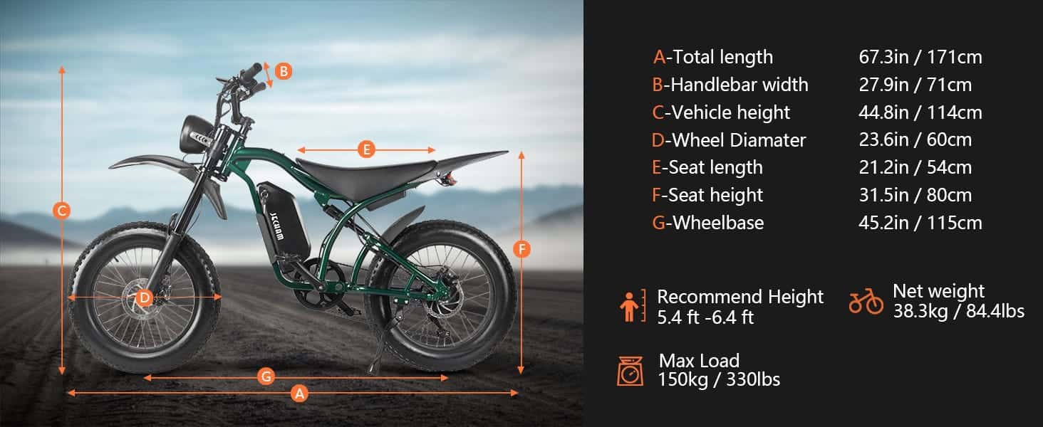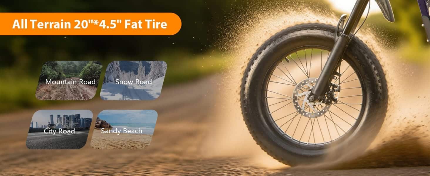 Tires: 20″ × 4.0″ fat tire