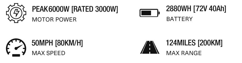 *Motor: Rated power 3000W / Peak power 6000W